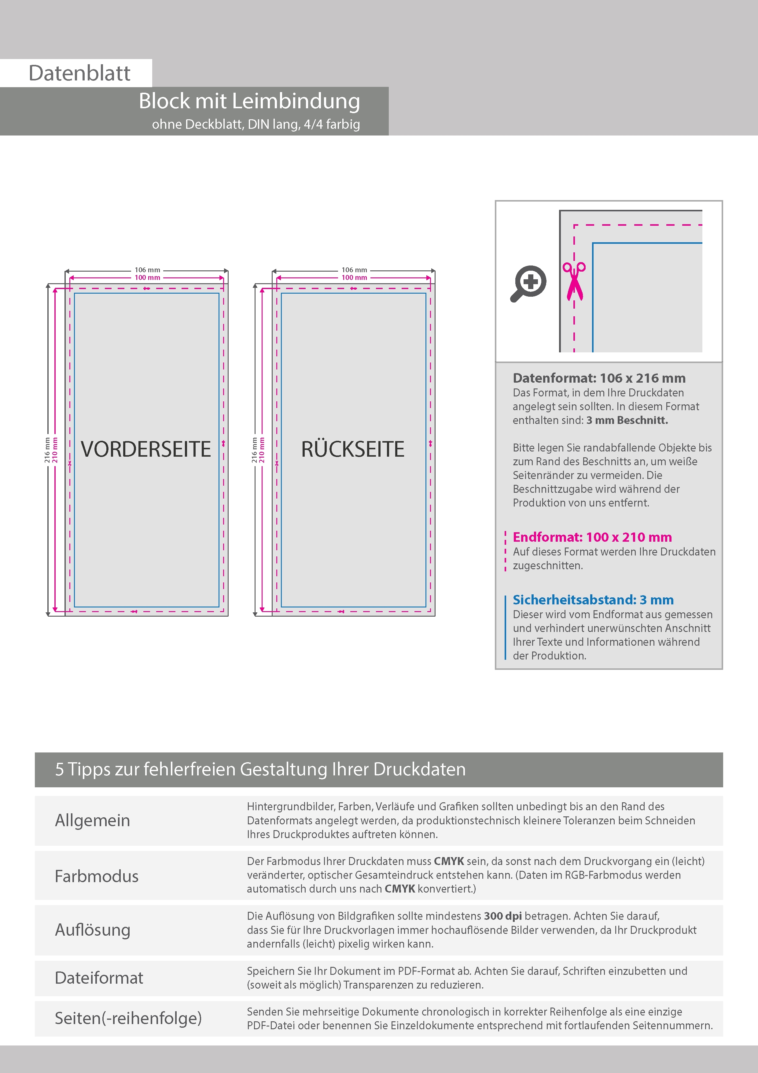 Block mit Leimbindung, DIN lang, 200 Blatt, 4/4 farbig beidseitig bedruckt